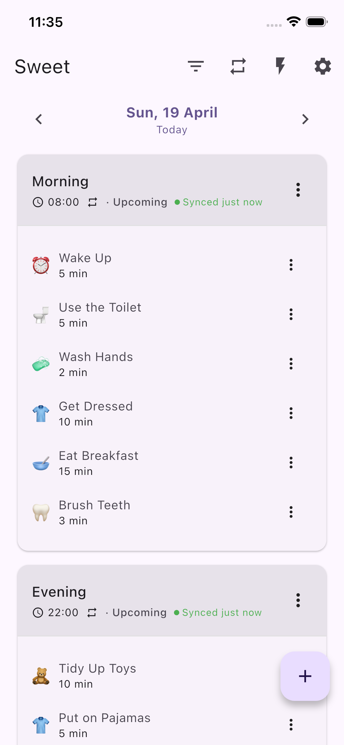 Add the steps and set the times. Start from a template or build from scratch — whatever fits your family. Parent app